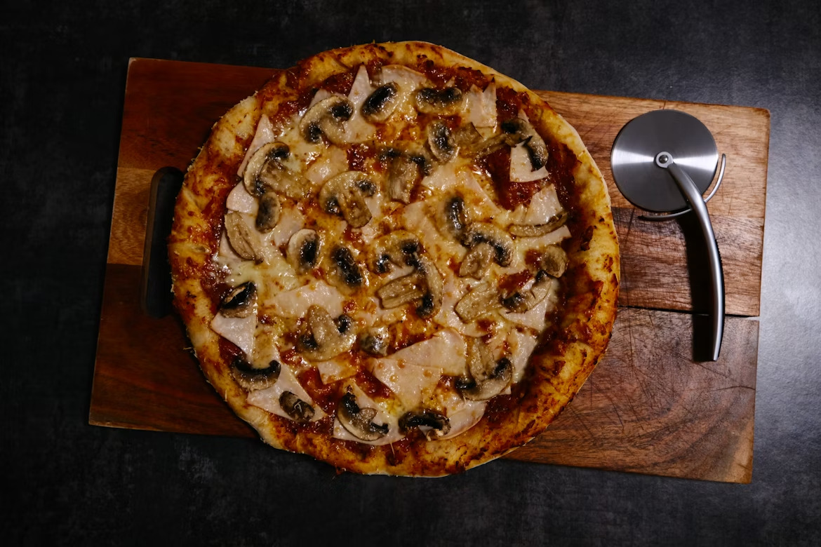 13.50€Sauce tomate, mozzarella, jambon blanc et champignons.